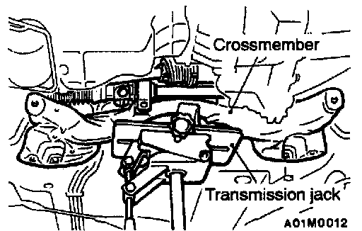 2) Remove the crossmember while supporting it with a transmission jack.