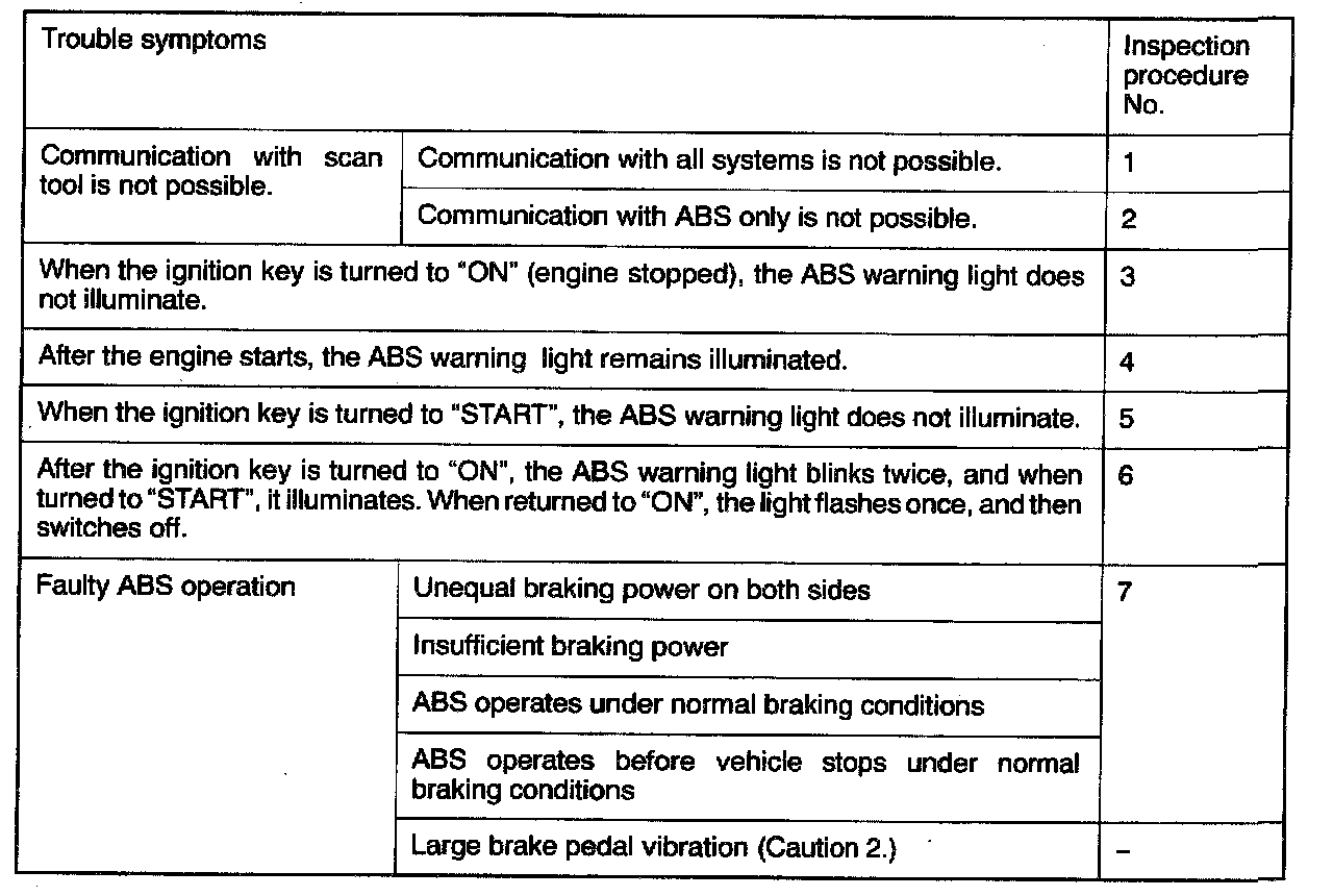 1. If steering movements are made when driving at high speed, or when driving on road surfaces with low frictional resistance, or when passing over bumps, the ABS may operate even though sudden braking is not being applied. Because of this, when getting information from the customer, check if the problem occurred while driving under such conditions as these.