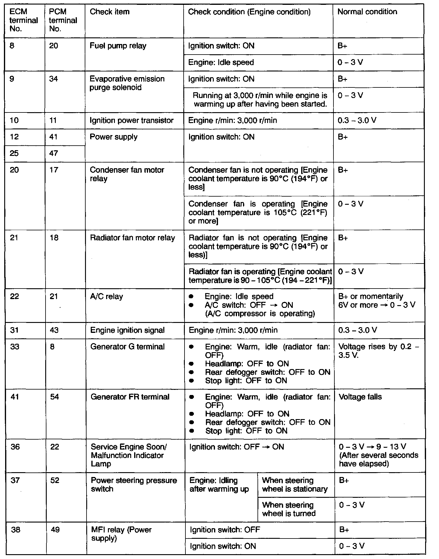 PCM Connector Terminal Arrangement: