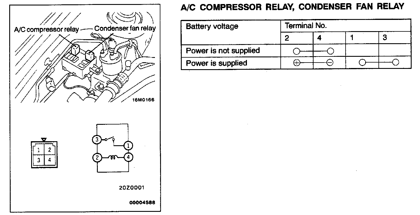 Power Relay Check - A/C Compressor Relay, Condenser Fan Relay: