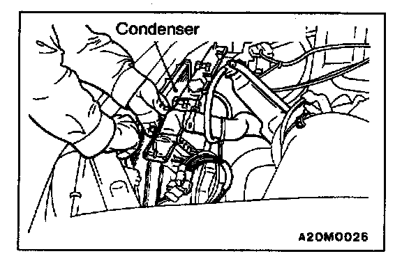 Move the radiator to the engine side and then lift up the condenser to remove it.