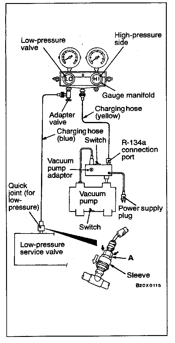 12. Turn the vacuum pump adaptor switch to the R-134a side to start the vacuum pump.