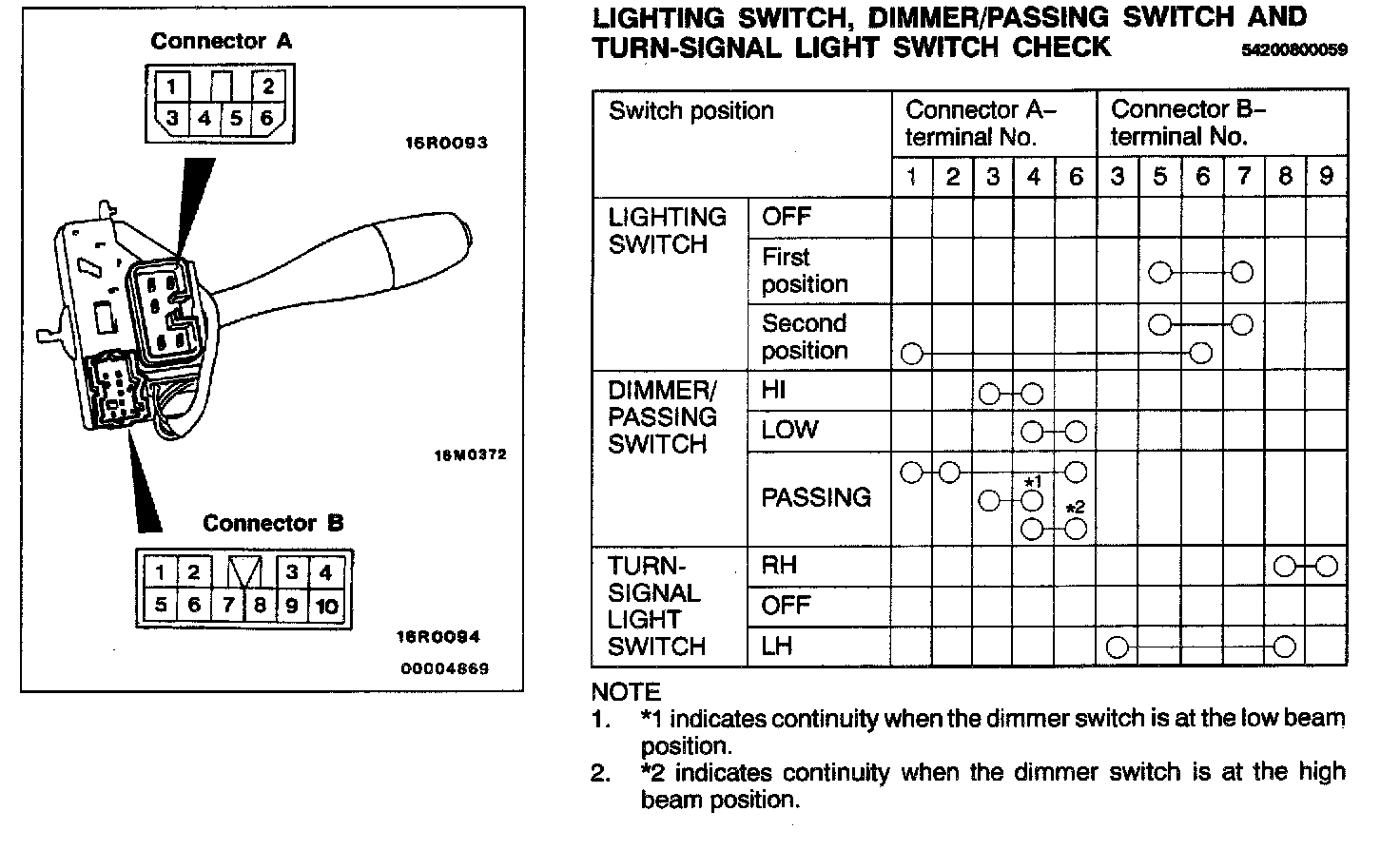 Lighting Switch, Dimmer/Passing Switch And Turn-Signal Light Switch Check: