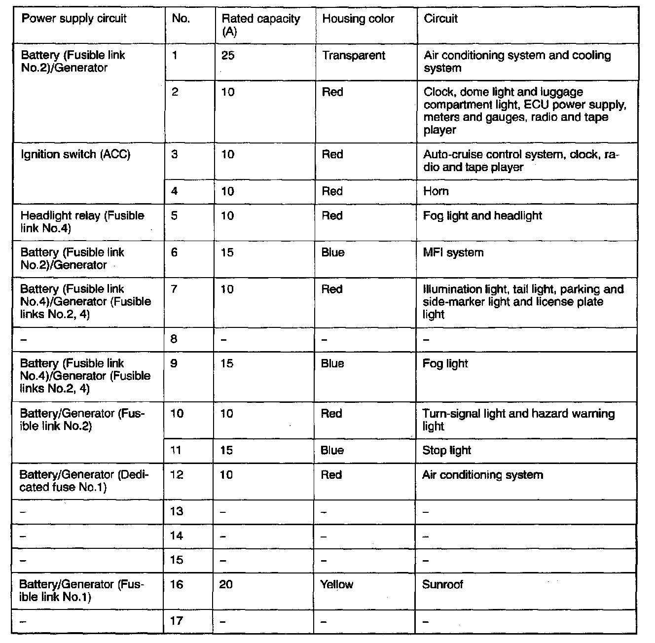 Dedicated Fuse 16 - 17 (In Junction Block):