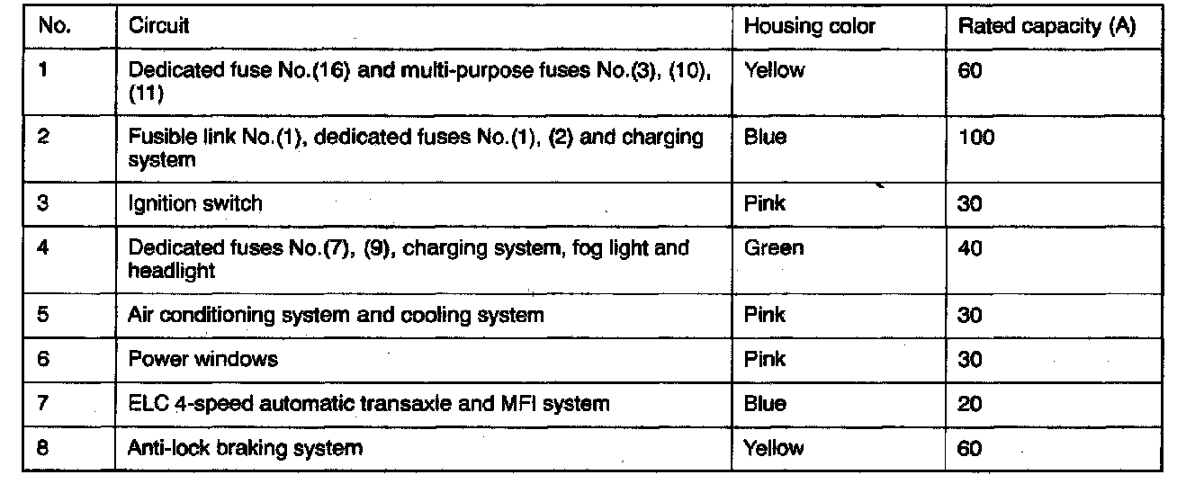Fusible Link 1 - 7 (Relay Box In Engine Compartment):