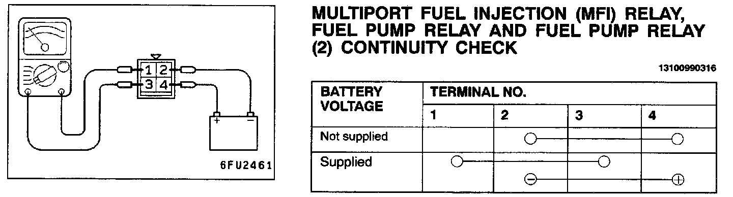 Multiport Fuel Injection (MFI) Relay, Fuel Pump Relay And Fuel Pump Relay (2) Continuity Check:
