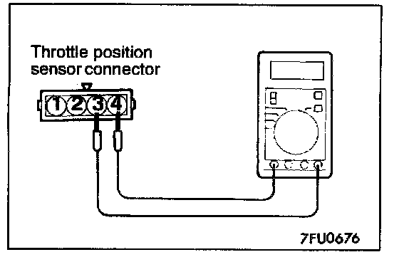 2. Check the continuity between the throttle position sensor connector side terminal 3 and terminal 4.