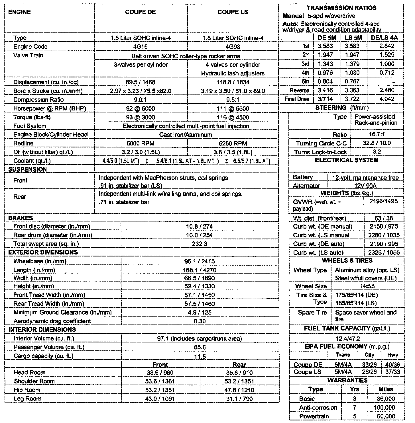 Mirage Coupe DE L4-1468cc 1.5L SOHC MFI