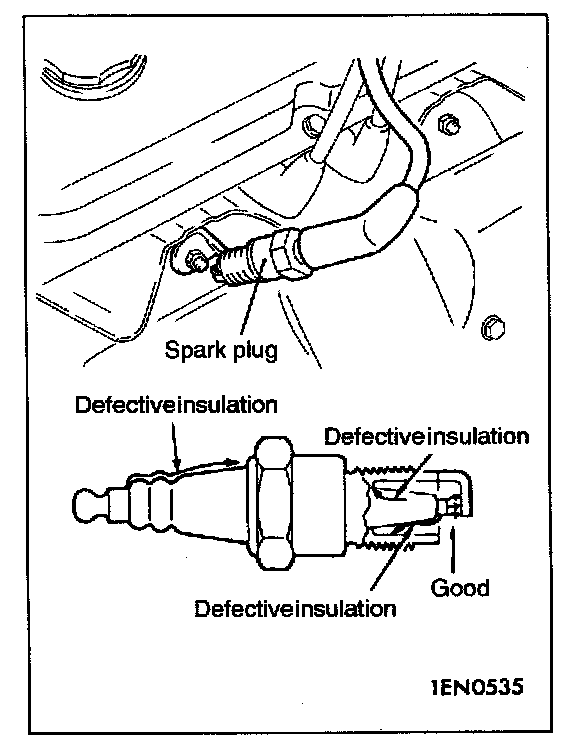 2. Ground the spark plug outer electrode (body), and crank the engine. Check for spark across the electrodes.