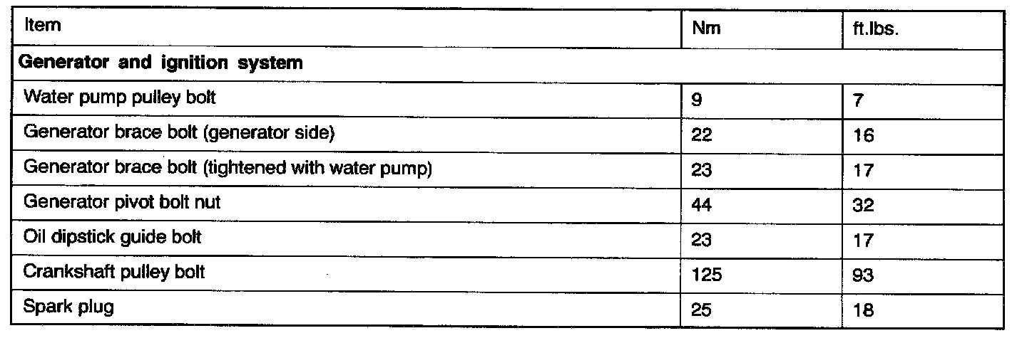 TORQUE SPECIFICATIONS