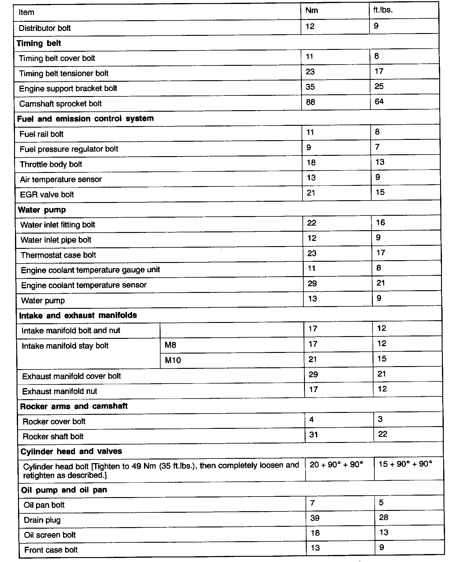 Torque Specifications