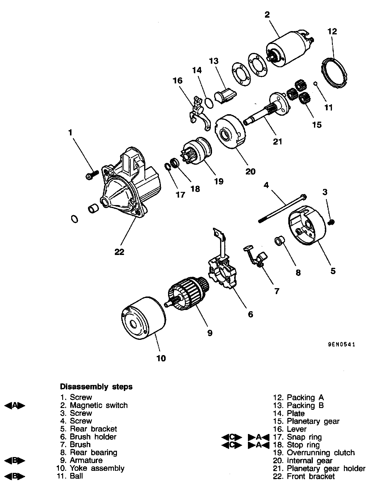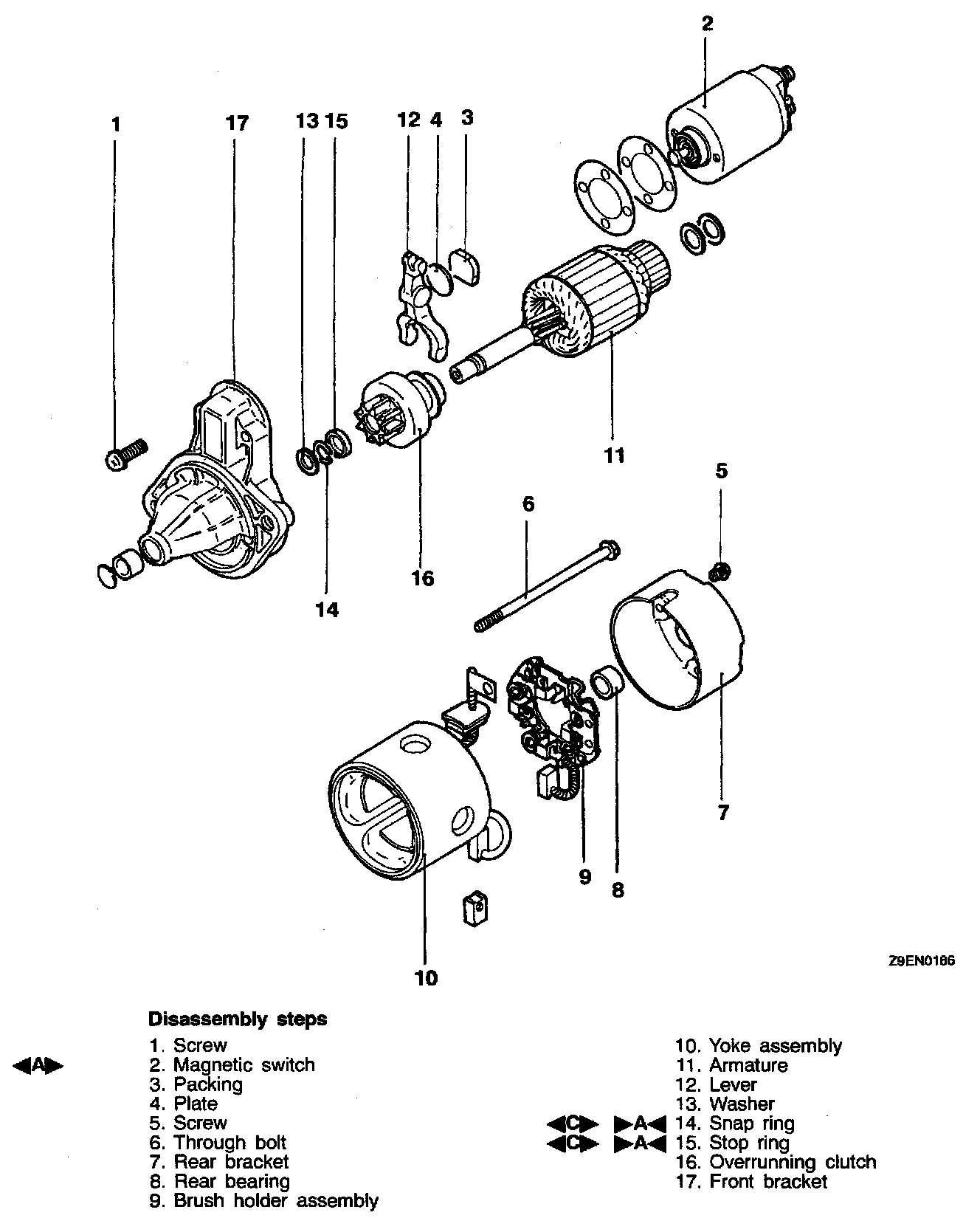 CAUTION: When removing the armature, take care not to lose the ball (which is used as a bearing) in the armature end.