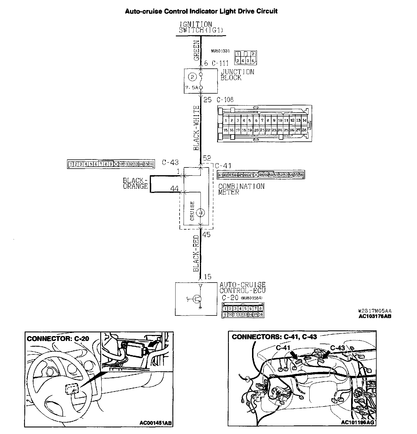 The power for the auto-cruise indicator in the combination meter is supplied from the ignition switch (IG1).