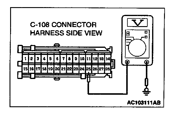STEP 3. Check the output circuit voltage at junction block connector C-108 by backprobing.