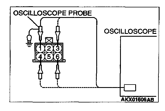 2. Connect the oscilloscope probe to the idle air control motor connector terminal 1, terminal 3, terminal 4 and terminal 6, respectively.