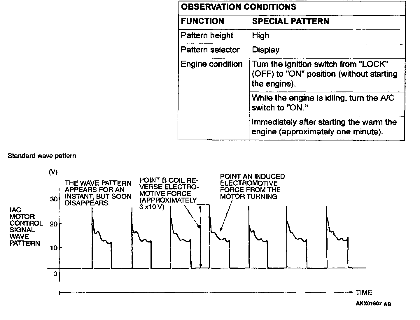 Check that the standard wave pattern appears when the idle air control motor is operating.