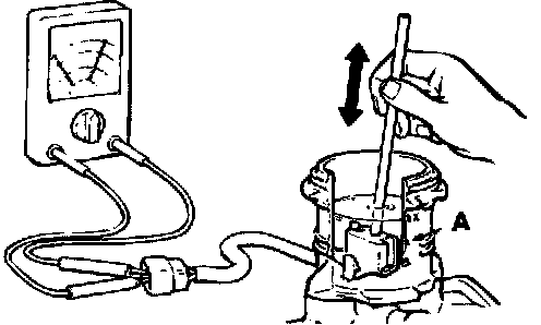 BRAKE FLUID LEVEL SENSOR CHECKThe brake fluid level sensor is in good condition if there is no continuity when the float surface is above "A" and if there is continuity when the float surface is below "A."