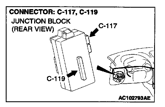 1. Disconnect ETACS-ECU connector C-119, and measure at the junction block side.