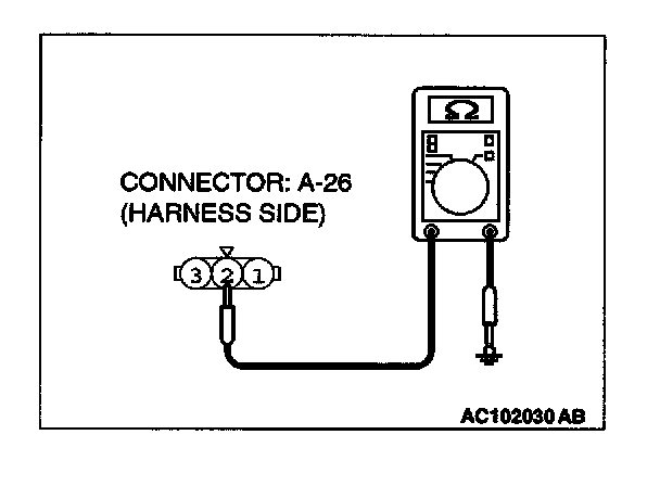 STEP 3. Measure at front combination light (LH) connector A-26 in order to check the ground circuit to the front combination light (LH).