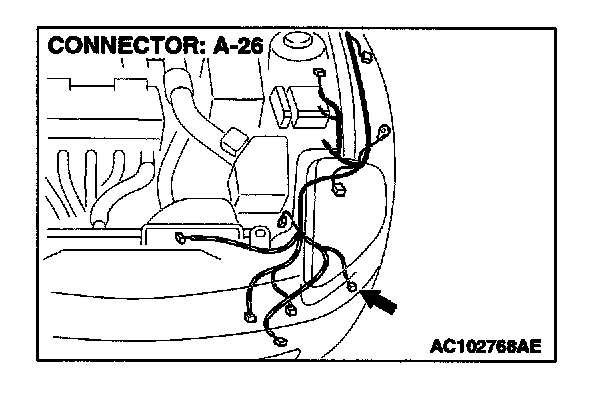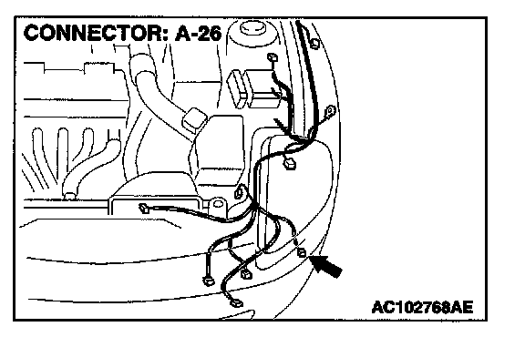 STEP 5. Check the wiring harness between front combination light (LH) connector A-26 and ground.
