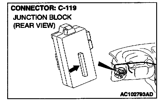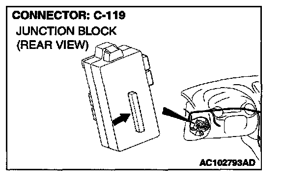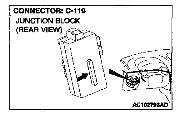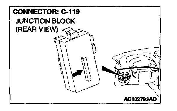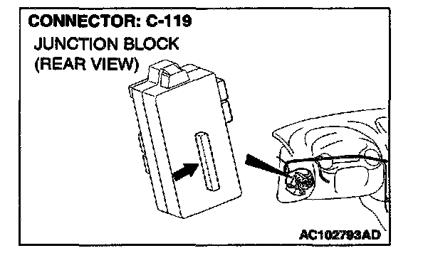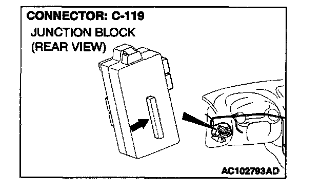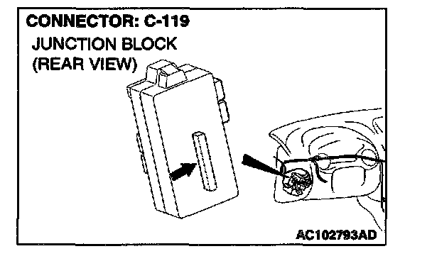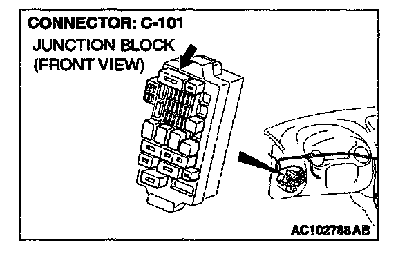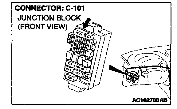 NOTE: Also check junction block connector C-101. If junction block connector C-101 is damaged, repair or replace the connector as described in Harness Connector Inspection.