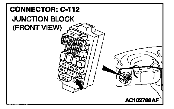 NOTE: Also check junction block connector C-112 and intermediate connector C-89. If junction block connector C-112 or intermediate connector C-89 is damaged, repair or replace the connector as described in Harness Connector Inspection.