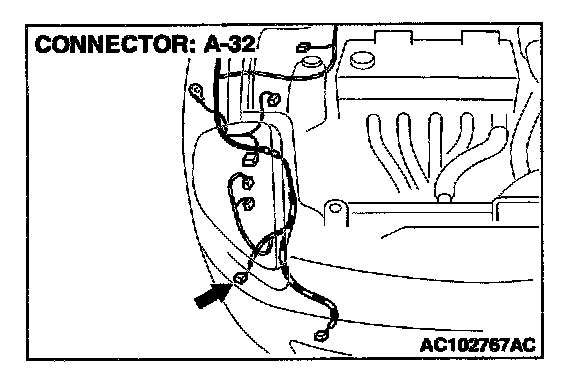 STEP 11. Check the wiring harness between front combination light (RH) connector A-32 and ground.