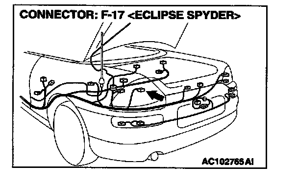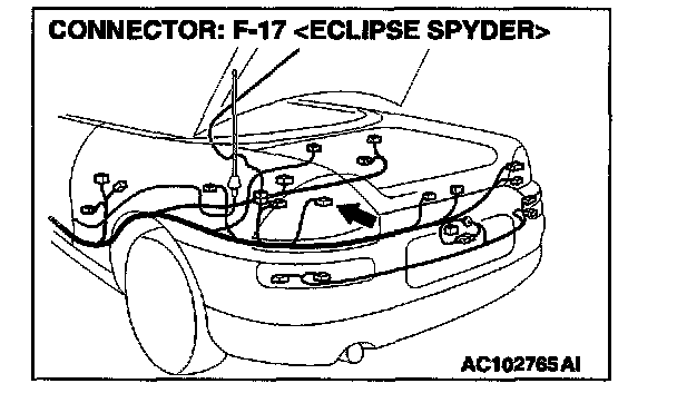 STEP 15. Measure at rear combination light (LH) connector F-17 in order to check the ground circuit to the rear combination light (LH).