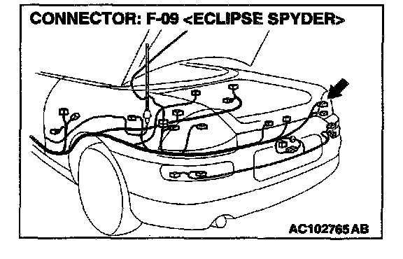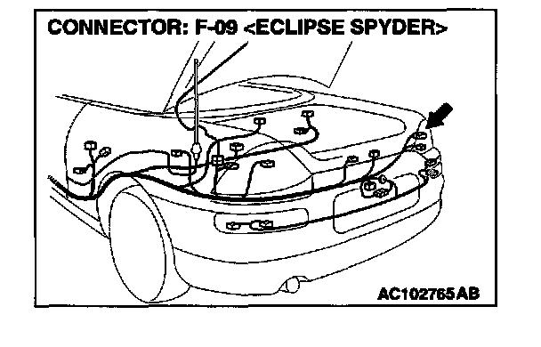 STEP 21. Measure at rear combination light (RH) connector F-09 in order to check the ground circuit to the rear turn-signal light (RH).