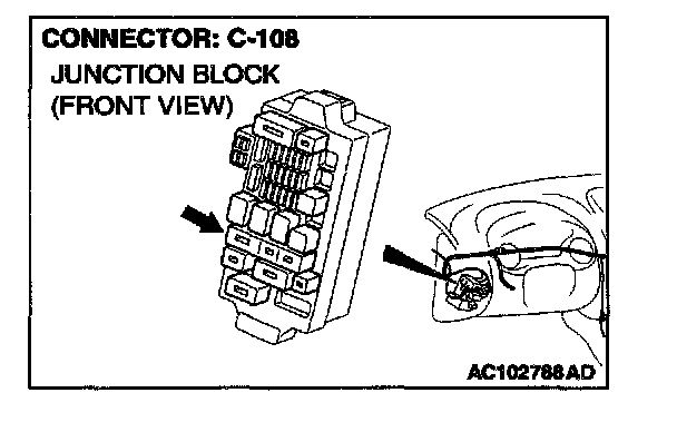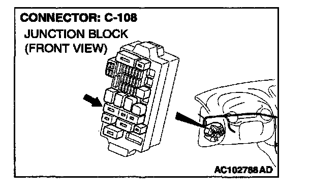 NOTE: Also check junction block connector C-108. If junction block connector C-108 is damaged, repair or replace the connector as described in Harness Connector Inspection.