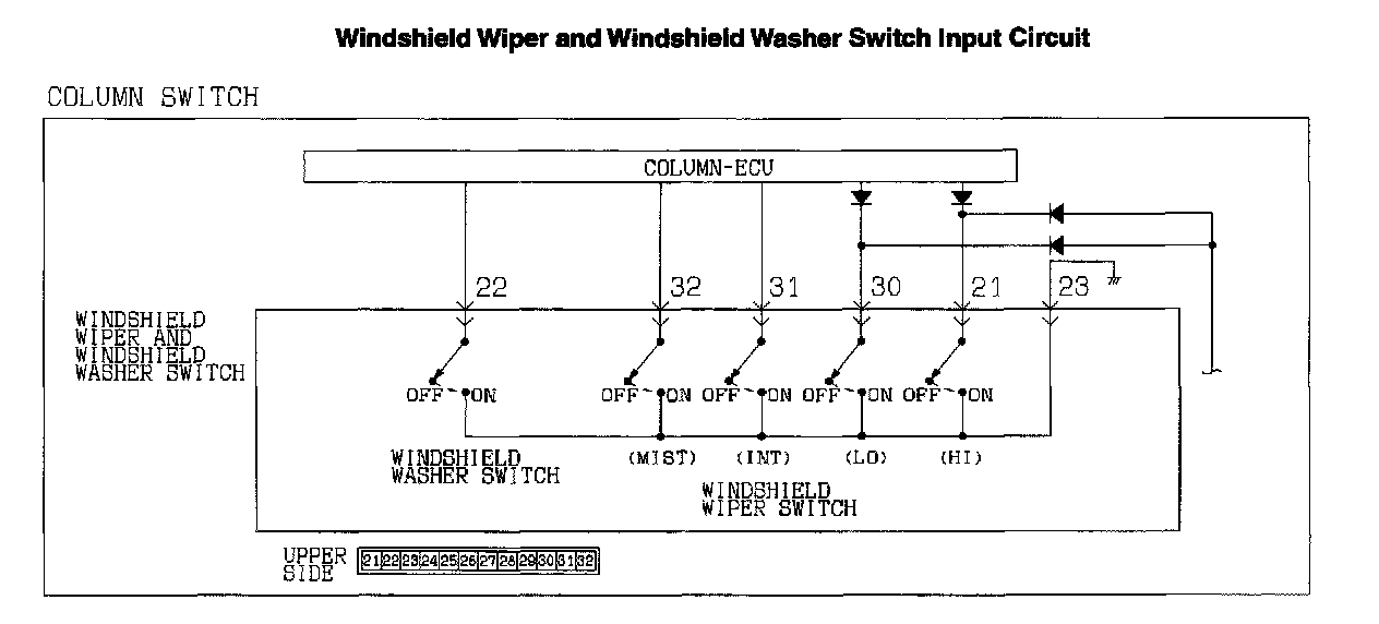 2. If the equipment, which are described in "CIRCUIT OPERATION", work normally, the input signal from the column switch (windshield wiper and washer switch) should be normal.