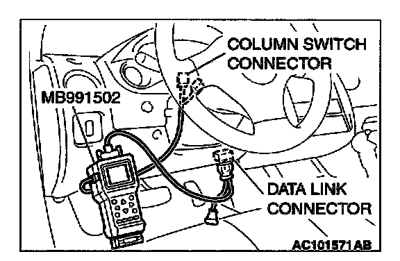CAUTION: To prevent damage to scan tool MB991502, always turn the ignition switch to the "LOCK" (OFF) position before connecting or disconnecting scan tool MB991502. Also connect SWS monitor kit MB991862 after turning on scan tool MB991502.