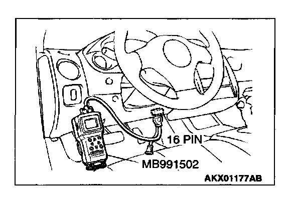 CAUTION: To prevent damage to scan tool MB991502, always turn the ignition switch to the "LOCK" (OFF) position before connecting or disconnecting scan tool MB991502.