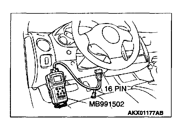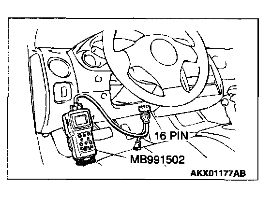 1. Connect scan tool MB991502 to the data link connector.