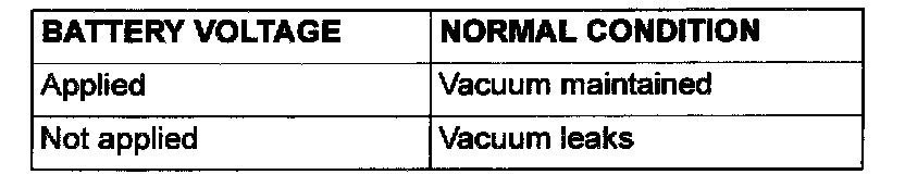 4. Check air tightness by applying a vacuum with voltage applied directly from the battery to the over vent valve module and without applying voltage.