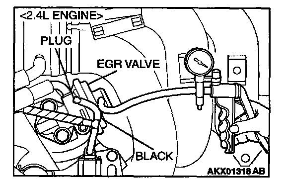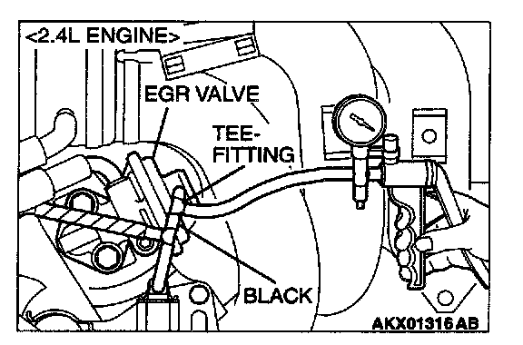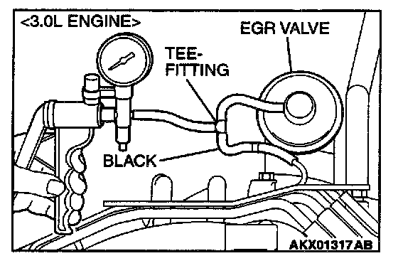 1. Disconnect the vacuum hose (black) from the EGR valve, and then connect a hand vacuum pump via the Tee-fitting.