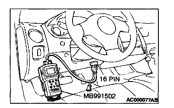 CAUTION: To prevent damage to scan tool MB991502, always turn the ignition switch to the "LOCK" (OFF) position before connecting or disconnecting scan tool MB991502.