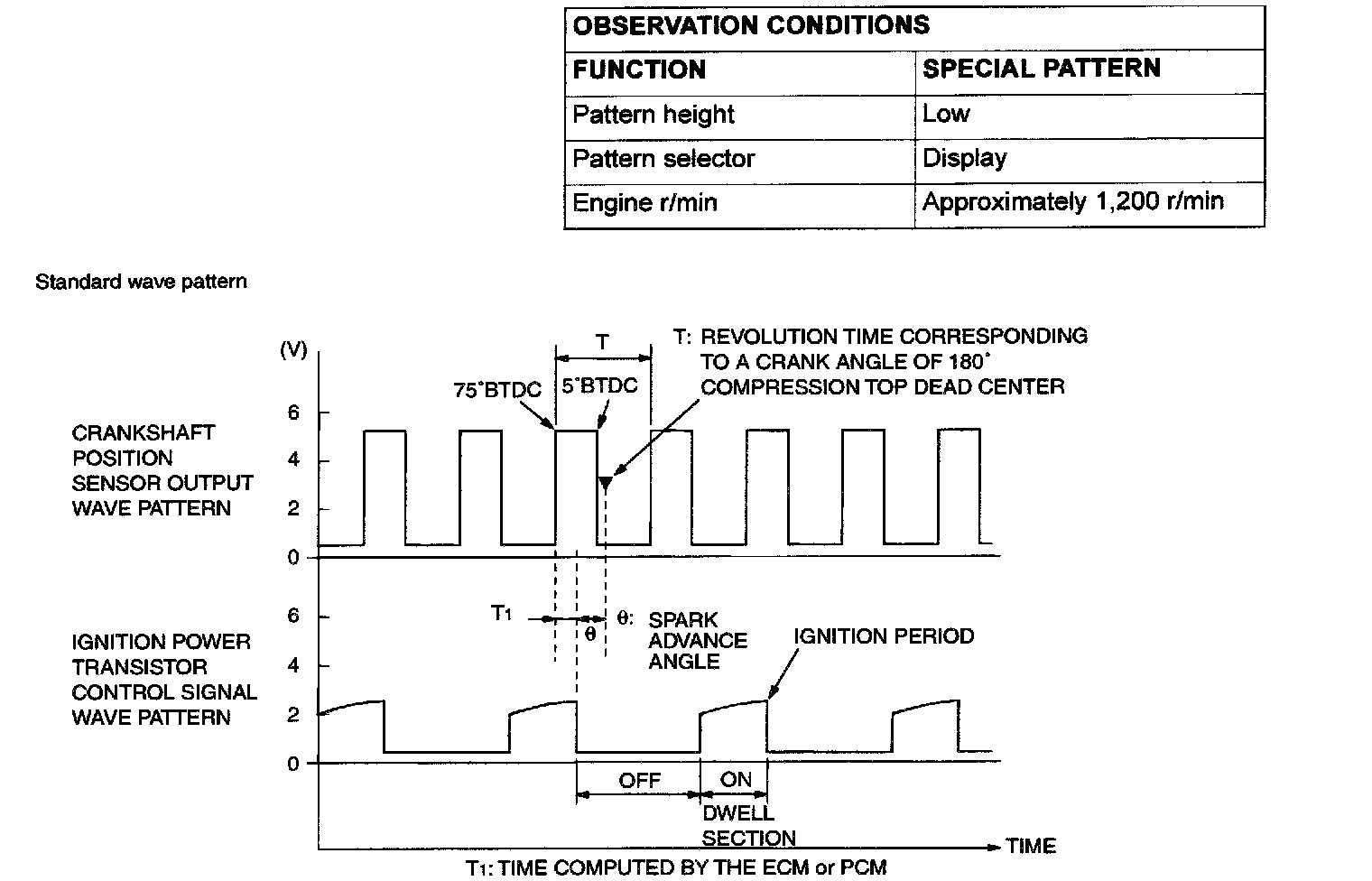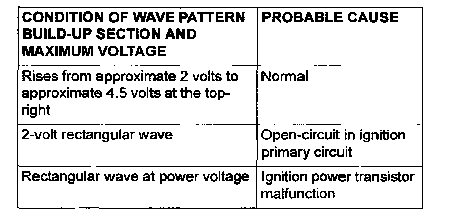 Point: Condition of wave pattern build-up section and maximum voltage (Refer to abnormal wave pattern examples 1 and 2.