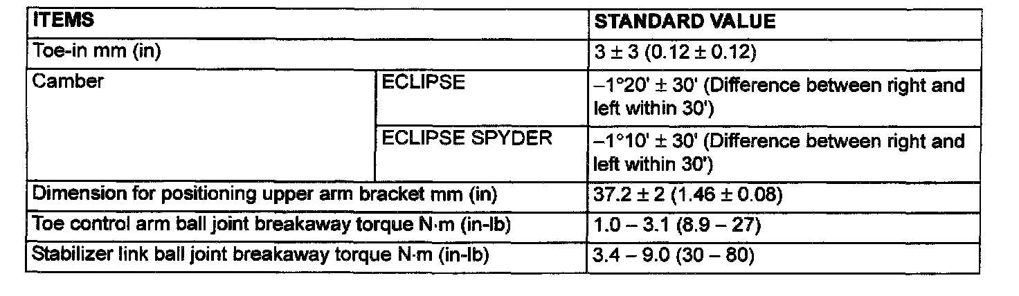 Rear Wheel Alignment Specifications