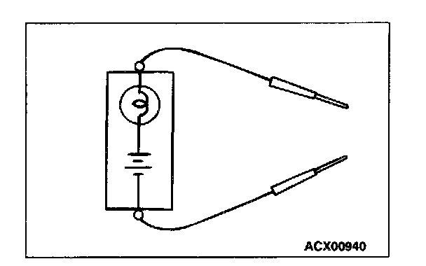 A test light consists of a 12 V bulb and lead wires. It is used to check voltages or short circuits.