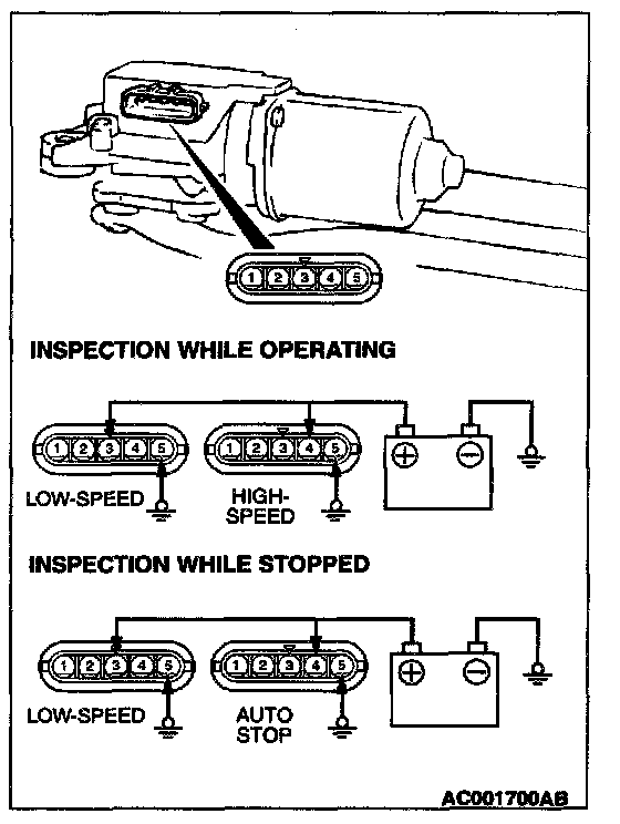 Check the wiper motor after disconnecting the wiring harness connector, and with the wiper motor remaining installed to the body.