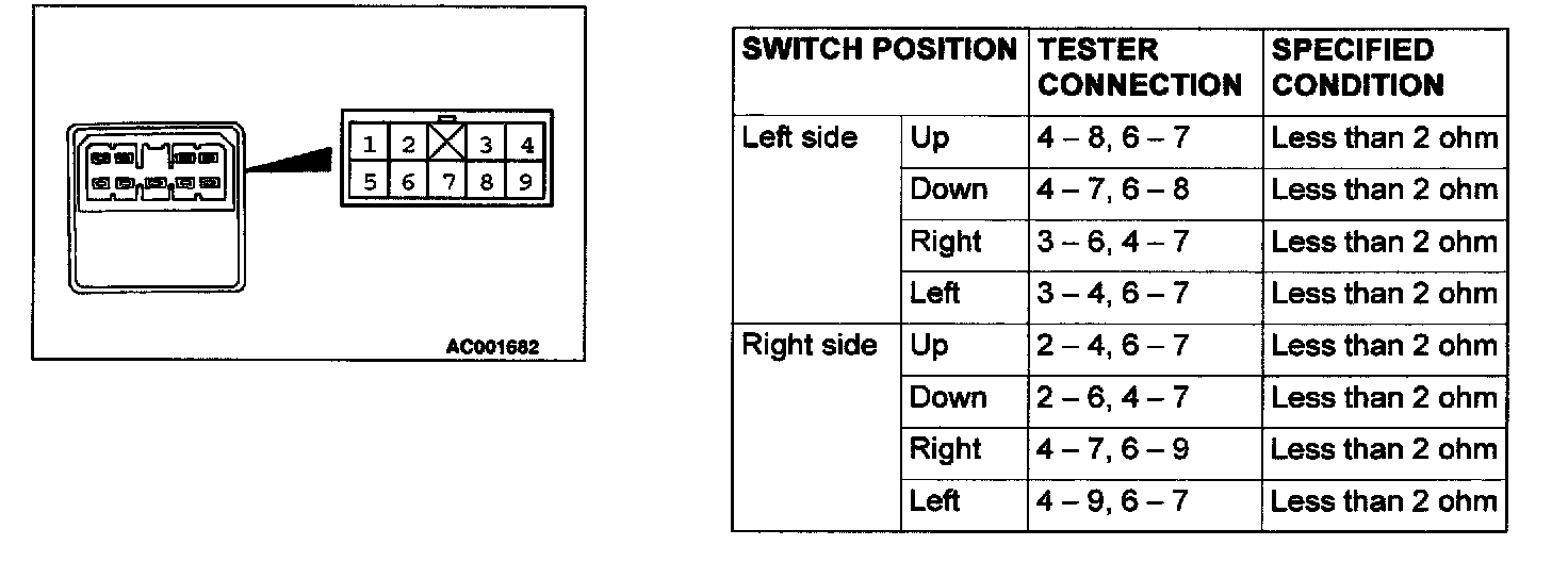 Power Mirror Switch: Testing and Inspection