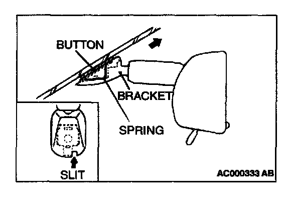 NOTE: While the spring is pushed in, connection between the spring and the pawl of the button is released.
