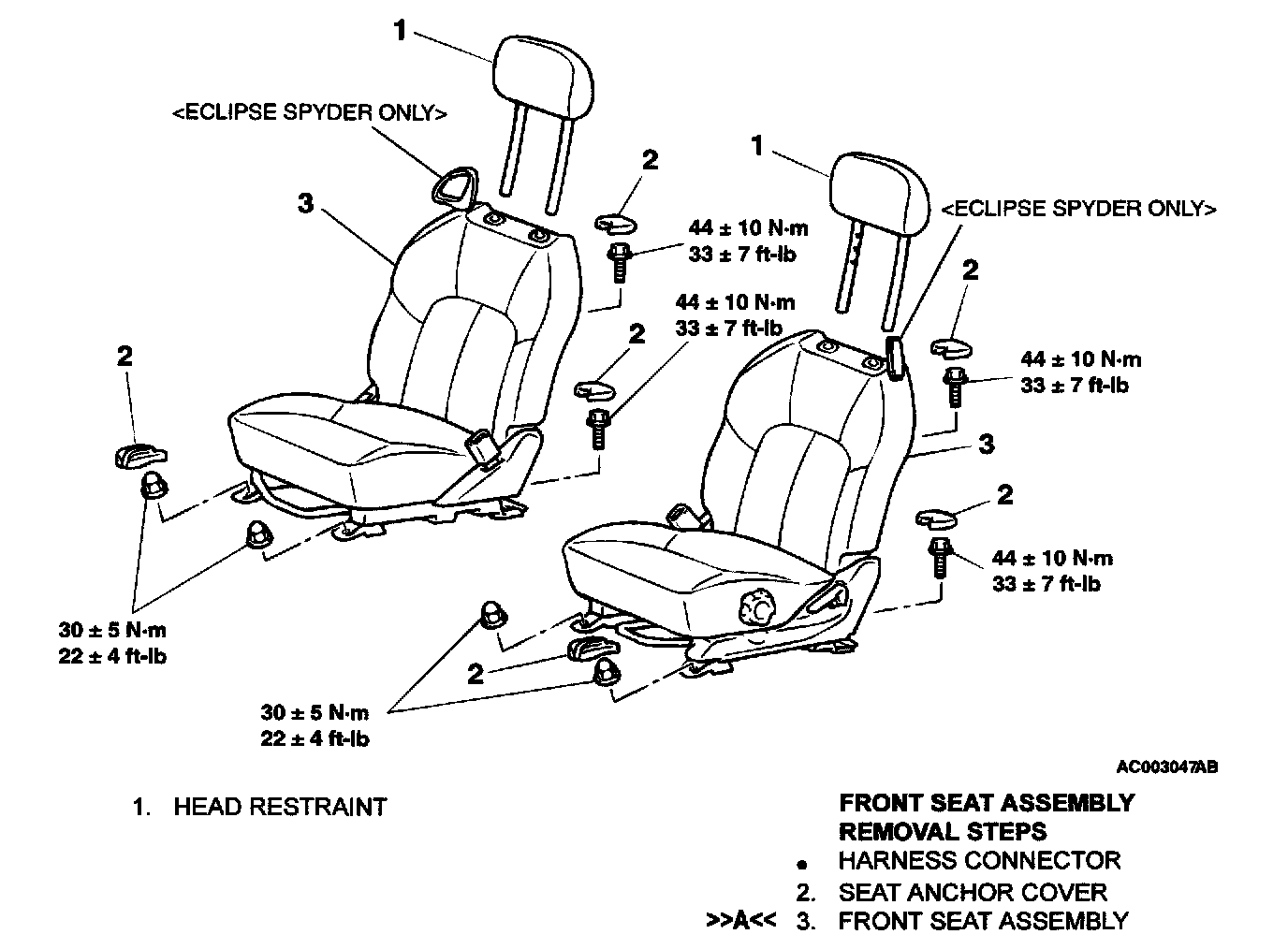 FRONT SEAT ASSEMBLYREMOVAL AND INSTALLATION