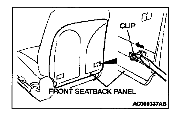 1. Using a screwdriver or similar tool, push in the clip of the front seatback panel lower portion to remove it.