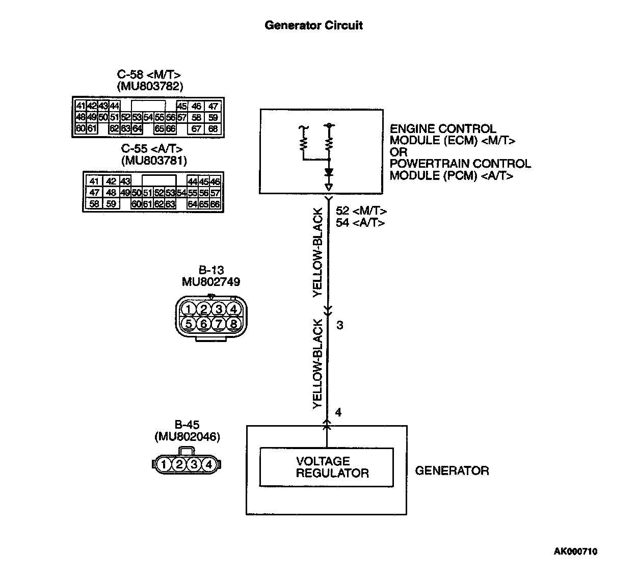 STEP 10. Check for harness damage between generator connector B-45 terminal 4 and ECM connector C-58 terminal 52