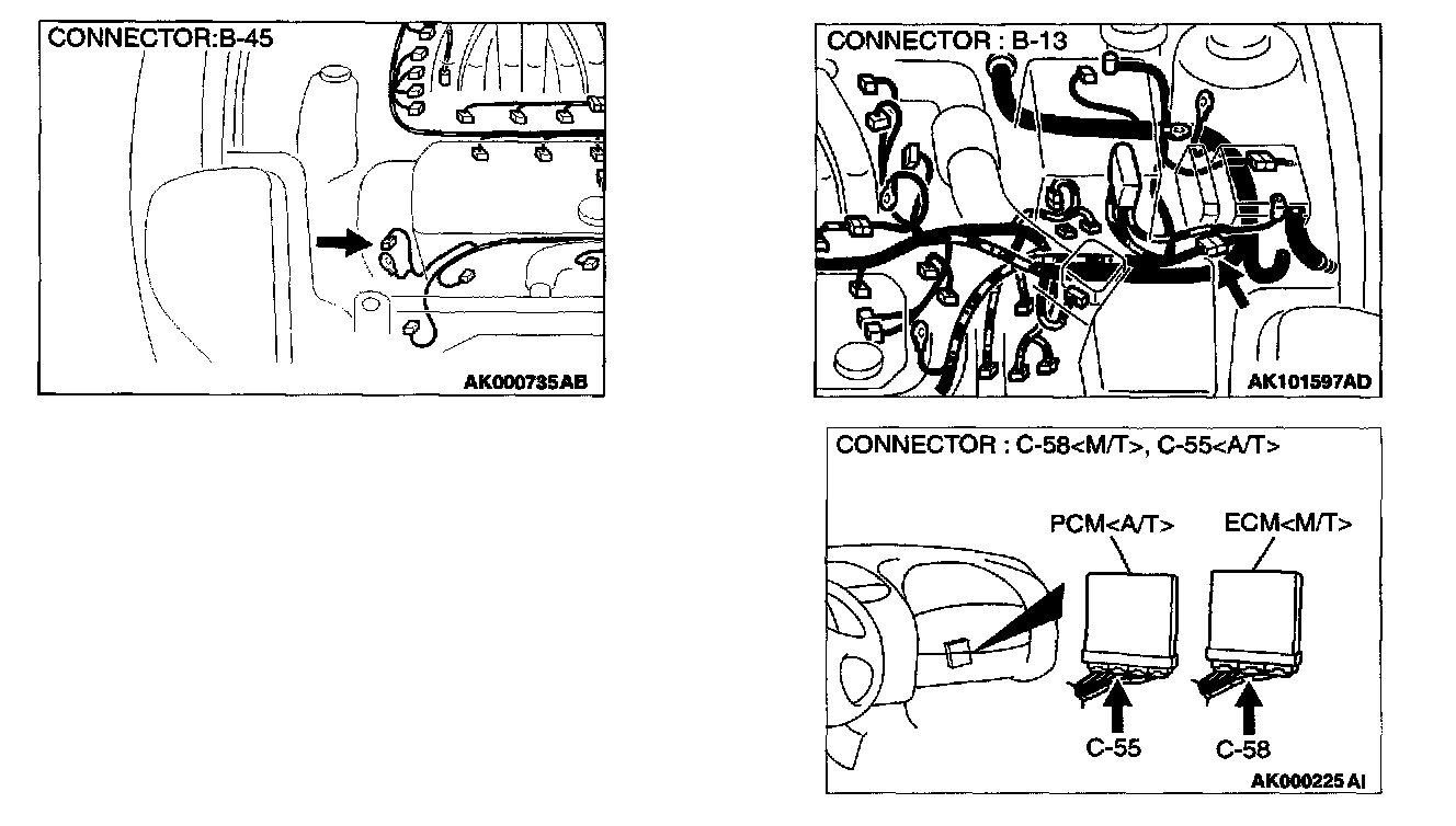 STEP 8. Check for open circuit and short circuit to ground between generator connector B-45 terminal 4 and ECM connector C-58 terminal 52