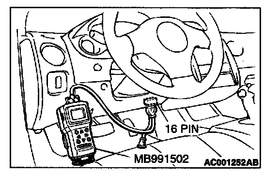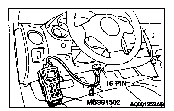 1. Connect scan tool MB991502 to data link connector (16 pin).