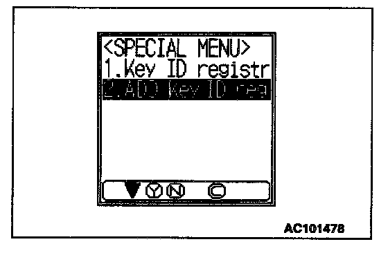 NOTE: Using the key ID register function will cause all key IDs that have been previously registered in the immobilizer-ECU to be erased. All keys need to be registered. Those which have been registered before should be on hand before using this function.