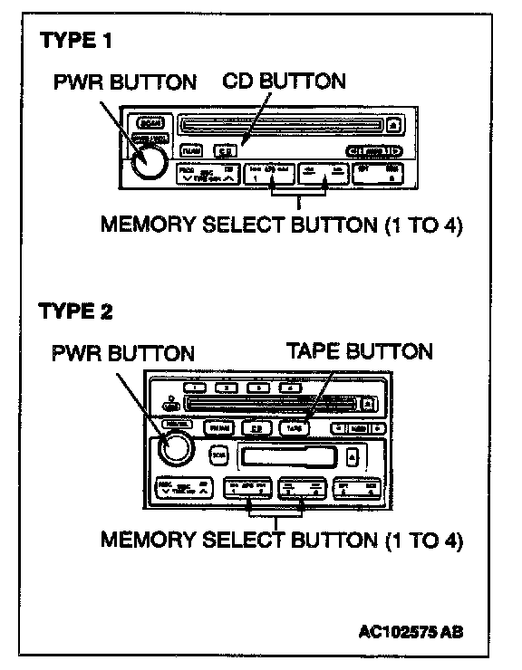 6. Press the "TAPE" button (type 1 and 3) or "CD" button (type 2), and a beep will be heard. If entered correctly, the radio with tape and CD player will work.